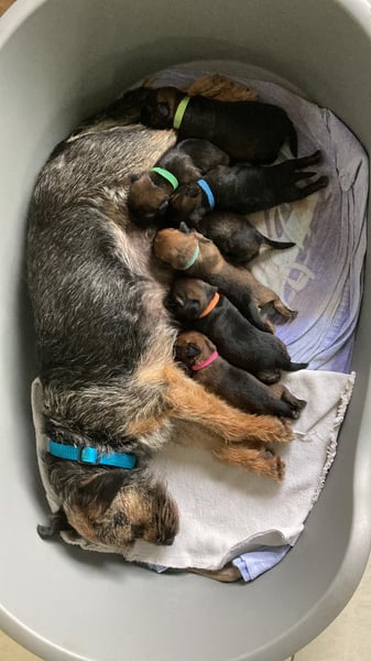 Seit dem 29 .10 2025 wohnen bei uns 7 Border Terrier Welpen; mit KfT Ahnentafel . 5 Rüden und 2 Hündinnen gehören seit nun 4 Wochen zum Zwinger vom Elzerberg.