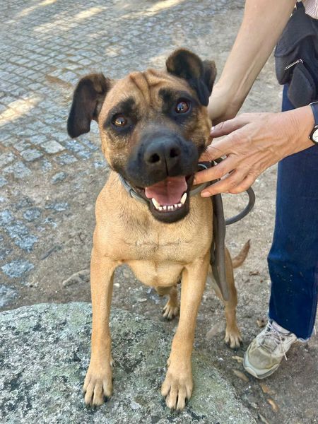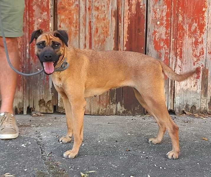 oxerfans aufgepasst! Ende März 2025 hat unser Partnertierheim diese zweijährige Hündin in sehr schlechtem Zustand aufgelesen. Sie wurde gepäppelt und durchgepflegt und zeigt sich nun wie aus dem Ei gepellt. Cardiguinja ist sehr menschenbezogen, angstfrei und freundlich mit Zweibeinern. Mit Artgenossen ist sie dominant im Zwinger oder im Freilauf, -beim Gruppenspaziergang aber leicht zu führen. Bei ca. 50 cm Schulterhöhe wiegt sie 18 kg. Diese Hündin hat zerstörte Trommelfelle und ist daher leider völlig taub. Sie orientiert sich natürlich fantastisch mit den Augen und dem Geruchssinn. Als Boxermischling hat sie keine Probleme mit der Atmung.