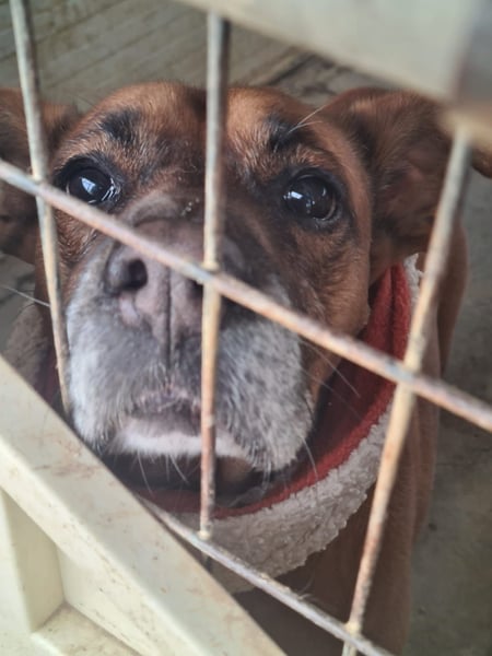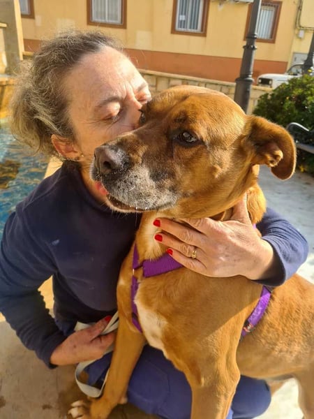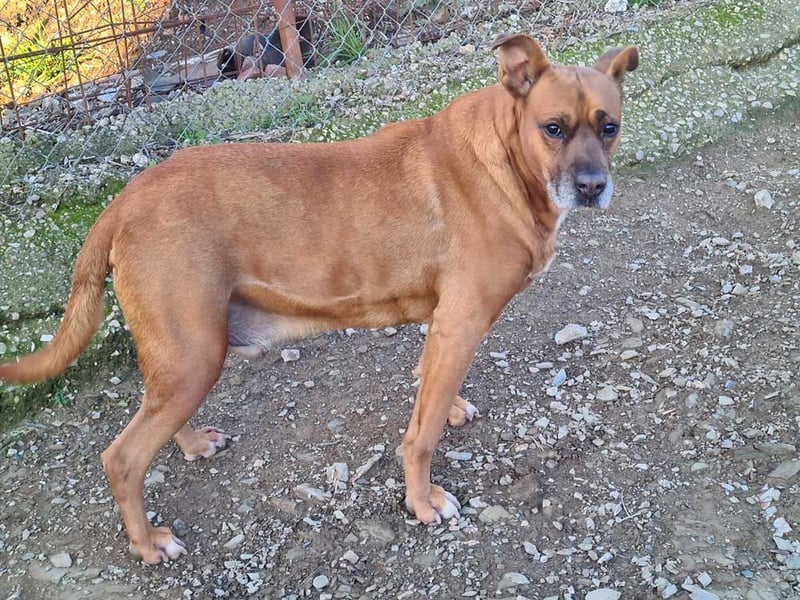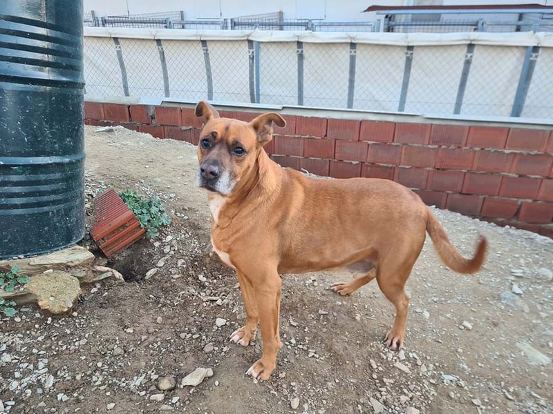 Barelli ist ein Boxer-Mischlingsrüde, der sich seit Juni 2023 in unserem Partnertierheim Hogar de Asis befindet. Ursprünglich wurde er aus einer städtischen Perrera herausgeholt. Hier lebte er mehrere Jahre alleine in einem Zwinger (genau wie die anderen Hunde) und durfte diesen lediglich fünf Minuten zum Saubermachen verlassen. Zudem hatte er nur sehr wenig Ansprache von Personen, da es hier nur einen Mann gab, der sich um viele Hunde kümmern musste.