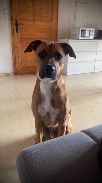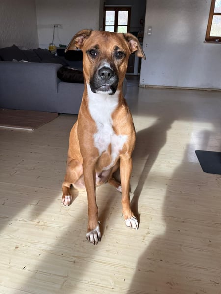 Notfall Percy sensibler Boxer Mischlingsrüde sucht dringend ein Zuhause bei geduldigen Menschen