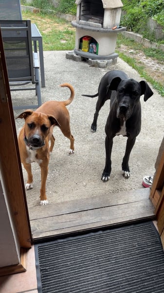 Ein weiterer sozialer, ruhiger und souveräner Hund im Haushalt wäre möglich, besonders eine Hündin.