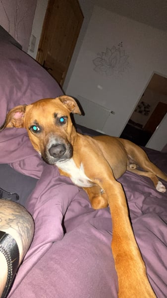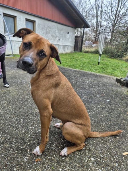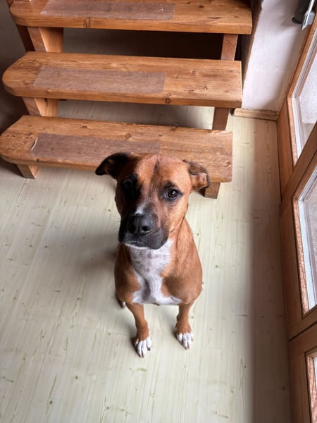 Percy ist ein Boxer-Mix, der eine stabile Bezugsperson braucht, die ihm Sicherheit gibt. Er ist ein Hund, der: