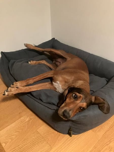 Nach langen Ausflügen liebt sie es, im Sommer besonders gerne in der Sonne, stundenlang zu dösen. Sie ist topfit und hat keinerlei Vor- oder derzeitige Erkrankungen. Aufgrund ihrer Rasse benötigt sie relativ viel Auslauf und gelegentlich auch Beschäftigung für die Nase. Leider kann ich ihr dieses Umfeld nicht mehr bieten.
