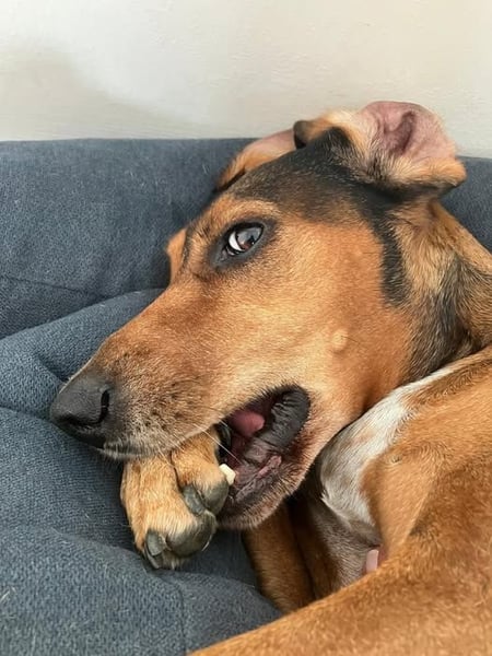 Sie ist mit etwa 2 Jahren über eine Adoptionsagentur aus Rhodos zu mir gekommen. Anfangs war sie eine abgemagerte, verschüchterte Hündin, hat sich aber großartig entwickelt und ist heute ein sehr liebevoller und umgänglicher Begleiter.