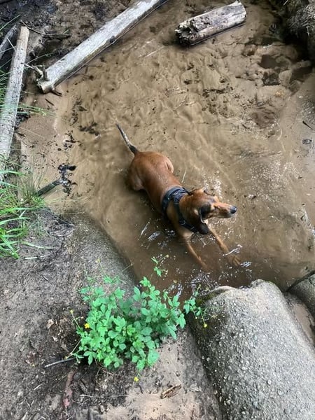 Man kann mit ihr problemlos im Freilauf spazieren gehen. Trotz ihres Rassenhintergrunds (Bracke) hat sie keinen ausgeprägten Jagdtrieb, liebt es jedoch, ausgiebig zu schnüffeln und ihre Umgebung zu erkunden. Vom Typ her ist sie eher eine freundliche und sehr ruhige Einzelgängerin. Mit anderen Hunden kommt sie problemlos zurecht, zeigt jedoch meist wenig Interesse an ihnen. In Räumlichkeiten mit anderen Hunden lässt sie ihnen den Vortritt und zeigt keinerlei dominante Verhaltensweisen.