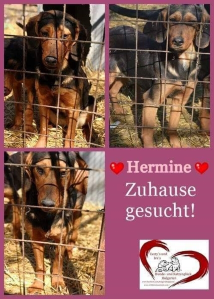 Hermine ist eine von 7 Geschwistern, die zusammen im zarten Alter von etwa 2 Wochen mit ihrer Mama versteckt unter einem Gebüsch gefunden wurden. 7 Welpen hat Mama Mara zur Welt gebracht und vor ihrem damaligen Besitzer versteckt. Der wollte die Babies nach der Geburt gleich "entsorgen", weil er sie nicht gebrauchen konnte.