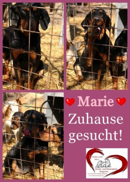 Marie ist eine von 7 Geschwistern, die zusammen im zarten Alter von etwa 2 Wochen mit ihrer Mama versteckt unter einem Gebüsch gefunden wurden. 7 Welpen hat Mama Mara zur Welt gebracht und vor ihrem damaligen Besitzer versteckt. Der wollte die Babies nach der Geburt gleich "entsorgen", weil er sie nicht gebrauchen konnte.