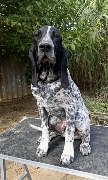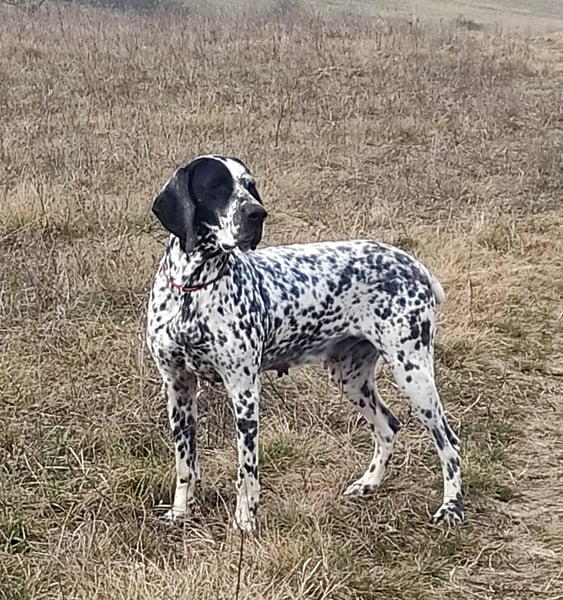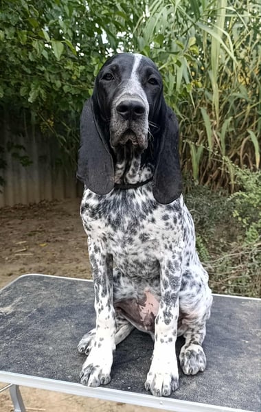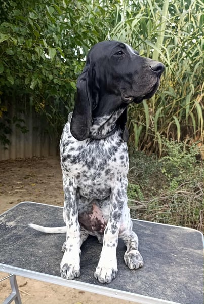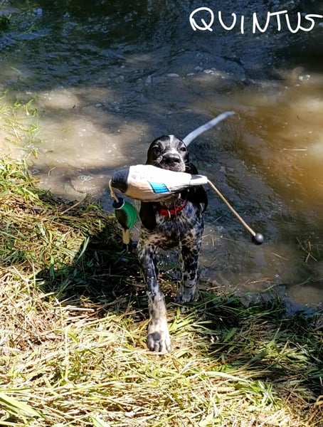 Quintus, ein 6 Monate alter Braque d'Auvergne Rüde, sucht ein liebevolles Zuhause. Er ist verspielt, intelligent und hat einen liebenswerten Ausdruck. Er ist ruhig, nicht aggressiv und liebt Wasser und Kinder. Außerdem spielt er gerne mit seinen Freunden.