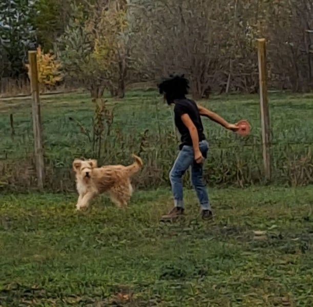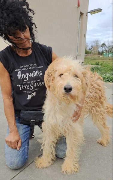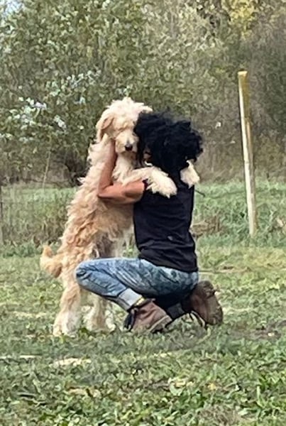 Jackline ist noch jung und verspielt. Typisch Hütehund/Briard ist sie menschenbezogen, sollte aber - gerade bei ihrer Größe – von Anfang konsequent und liebevoll erzogen werden. Zudem braucht ihr Fell regelmäßige (2-3x / Woche) und intensive Pflege, um nicht zu verfilzen.
