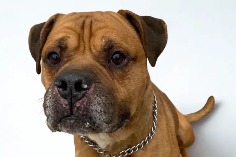 Teddy ist ein lieber Bullmastiff-Mischling, der im Leben bisher keine faire Chance bekommen hat.