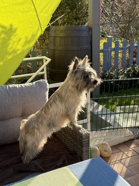 Fast 2 Jahre alte Cairn Terrier Hündin in gute Hände abzugeben! Leider bin ich sehr erkrankt und muss mich von der Super Maus trennen ! Sie ist absolut sozial mit anderen Hunden! Sehr Kinderlieb!! Hat Papiere und wäre mit Sicherheit Zucht tauglich! Sie ist sehr pflegeleicht! Allerdings hat sie einen ausgeprägtem Jagdinstinkt! Sie ist auch beim Trimmen sehr geduldig! Ein richtiger Sonnenschein die Maus !