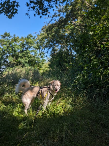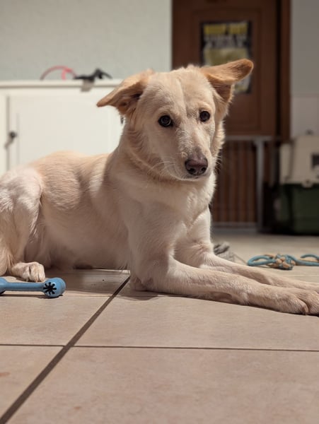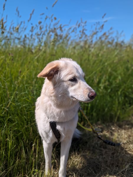Wir suchen für Jeannie ein neues Zuhause. Sie ist grundsätzlich verträglich mit anderen Hunden und freundlich zu Menschen, dabei in der Begegnung mit fremden Personen und Eindrücken zunächst sehr skeptisch. Sie ist gerne in Feld und Wald unterwegs. An kurzer Leine läuft sie recht gut, reagiert mitunter noch schreckhaft z. B. bei plötzlichen Geräuschen. An langer Leine muss noch an der Orientierung und am Rückruf gearbeitet werden. Besuch und weitere Umweltreize meldet sie durch Bellen und reagiert oft sehr zurückhaltend bis ängstlich. Durch ihre große Neugier kann man sie jedoch mit viel Geduld an neue Situationen gewöhnen.