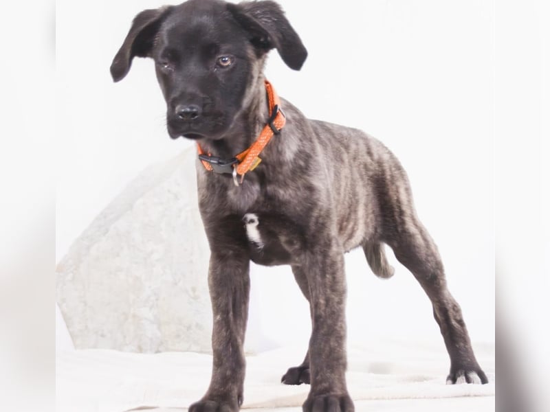Dürfen wir Ihnen Natalia vorstellen: eine Cane-Corso-Mischlingshündin, geboren im Dezember 2025. Gemeinsam mit ihrer Mutter und ihren Geschwistern wurde sie in einem Garten zurückgelassen. Anwohner brachten die kleine Familie daraufhin in ein privates Tierheim in Portugal, wo Natalia heute in Sicherheit lebt. Ausgewachsen wird sie voraussichtlich eine Schulterhöhe von etwa 65 cm erreichen.
