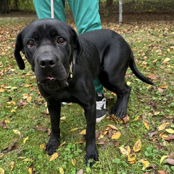 Luna-Nera (bedeutet „schwarzer Mond“) ist ein Mädchen, sie ist laut Tierarztschätzung ca. 1,5 Jahre alt (geb. am 09.01.2024), 63 cm groß und wiegt ca. 35 kg. Vermutet wird ein Cane Corso (Mischling).