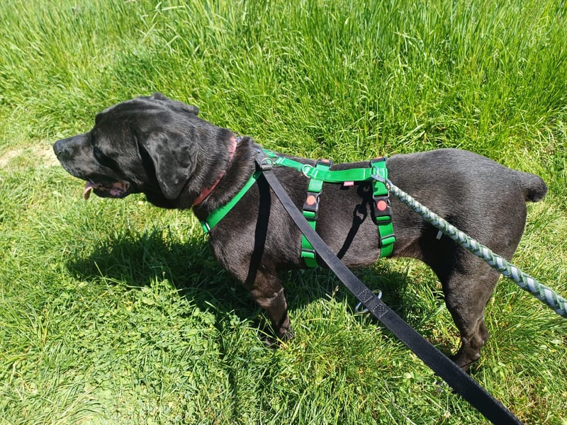 Bislang zeigt sie keinen Jagdtrieb. Auch Lärm wie Traktoren oder LKW bringen sie nicht aus der Fassung – Arena bleibt gelassen und souverän. An der Leine läuft sie wunderbar mit und zeigt sich auch draußen sehr ausgeglichen. Gerne wälzt sie sich ausgiebig im Gras und hat große Freude beim Spaziergang. Im Garten spielt sie gerne auch mit dem Ball und freut sich, wenn man sich mit ihr beschäftigt, ihr Alter merkt man ihr nicht an, sie ist topfit. Arena fährt sehr gut Auto und springt auf Kommando hinein. Sie kennt auch die Kommandos „Sitz“, „Pfote“ und „Nein“. Abends liegt sie am liebsten mit ihren Menschen auf dem Sofa und liebt es zu kuscheln.