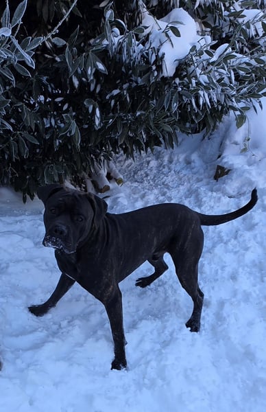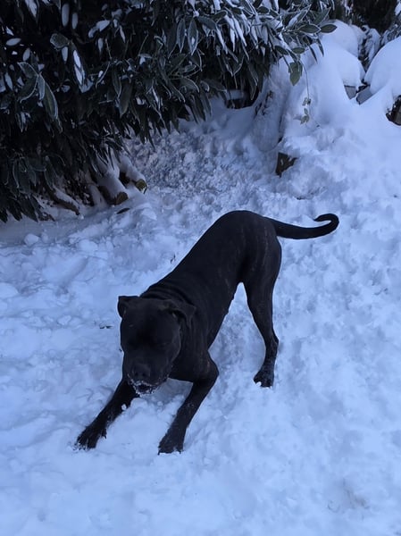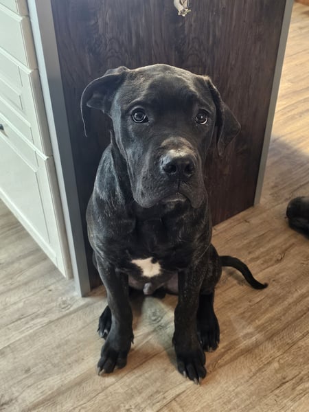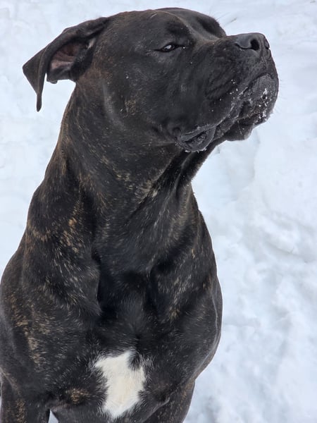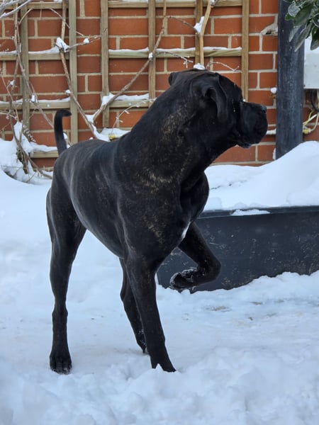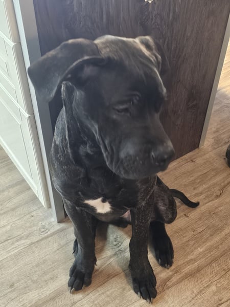 Knut ist ein beeindruckender, gestromter Molosser-Mischling, der nicht nur optisch ein absoluter Hingucker ist. Er ist wachsam, loyal und ein echtes Kraftpaket für Liebhaber dieser Rassen.