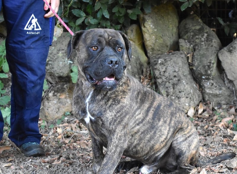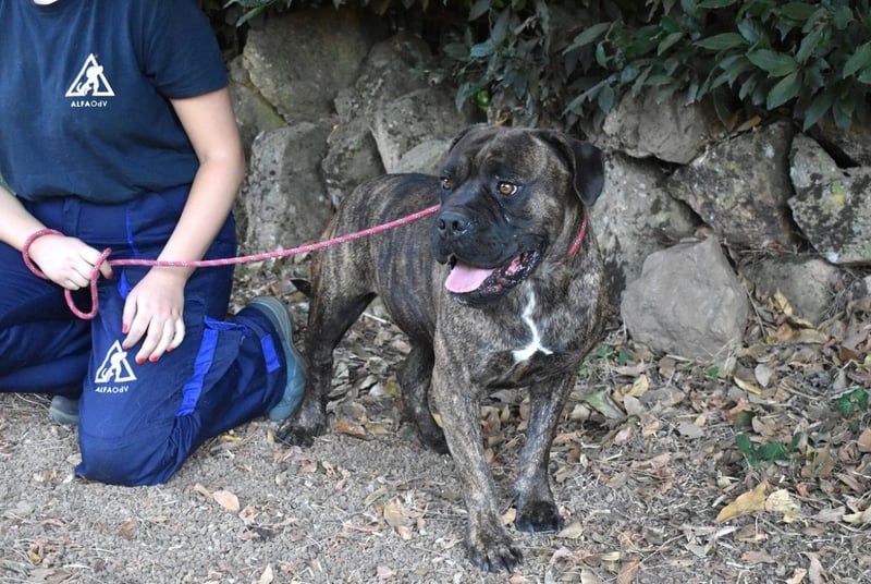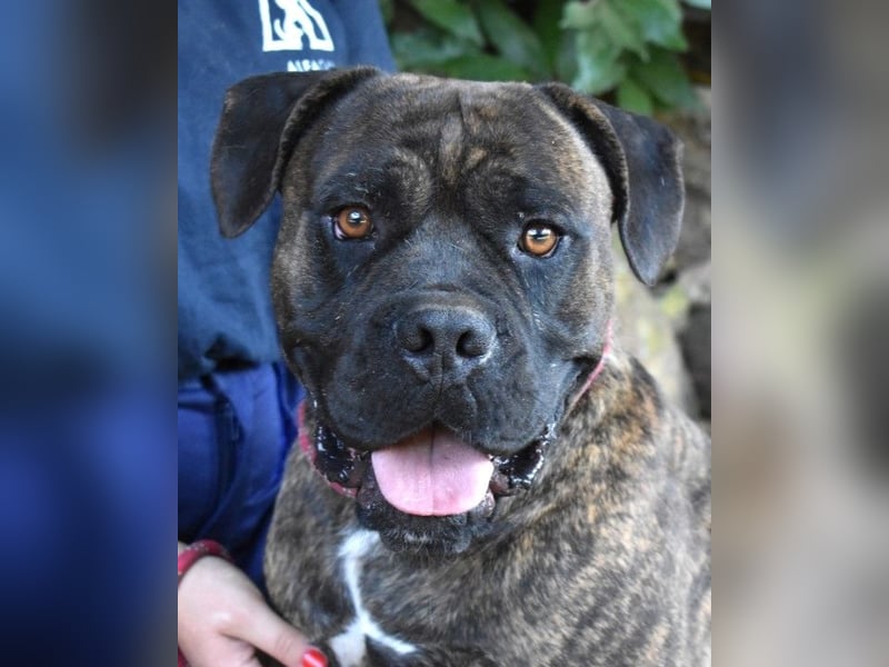 Devvon ist ein außerordentlich lieber Hund. Nichtsdestotrotz suchen wir für ihn Menschen, die ein paar Voraussetzungen erfüllen. Zuallererst muss seine zukünftige Familie an einem Ort wohnhaft sein, wo es grundsätzlich erlaubt ist, einen Cane Corso Mischling zu halten - falls Sie sich für Devvon interessieren, dann erkundigen Sie sich bitte diesbezüglich bei Ihrer Gemeinde. Devvons neue Lieblingsmenschen müssen etwas Hundeerfahrung mitbringen, oder, und das wäre das Non-Plus-Ultra, sich sogar mit molossoiden Rassen auskennen. Und sie sollten nicht nur ein ordentlich großes Sofa haben, das er mit ihnen teilen könnte, sondern auch eher standfest sein. Denn bei aller Liebenswürdigkeit ist Devvon auch ein kräftiger Hund, der etwas Jagdtrieb haben könnte - oft reicht eine Katze, die plötzlich hinter einer Hausecke hervorspringt, und ein Hund reagiert reflexartig. Wer da nicht wachsam ist und genügend Kraft besitzt, um Devvon von seinem Plan abzuhalten, hat verloren. Da wir nicht wissen, wie Devvon auf andere Hunde (oder Katzen) reagiert, sehen wir ihn eher als Einzelprinzen in einem Haus, gerne in ländlicher Umgebung mit hundesicher eingezäuntem Garten.