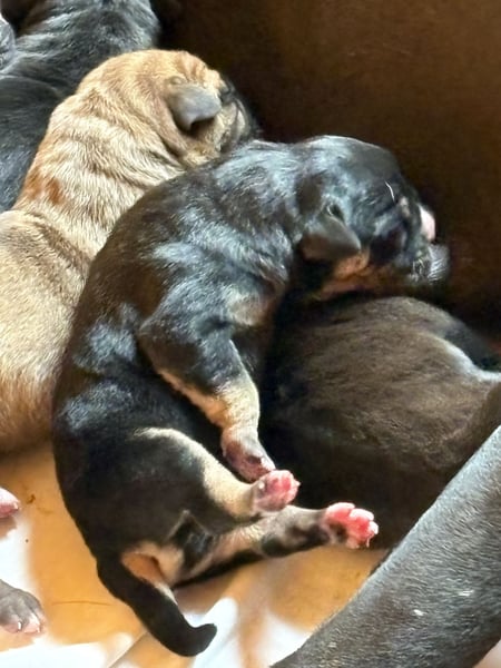 Mutter: Alba Royal Molly ? HD A, ED 0. Ebenfalls wesensfest, familiengehalten und sozial sicher.
