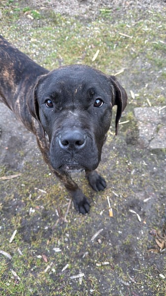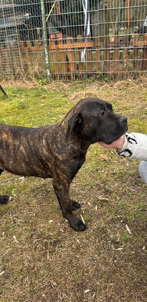 Diese junge Cane-Corso-Hündin (geschätzt 12–13 Monate alt) sucht ein erfahrenes, liebevolles Zuhause bei verantwortungsbewussten Liebhabern der Rasse.