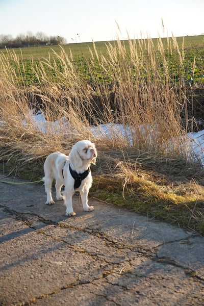 Leinenführigkeit: gut mit etwas Luft nach oben. Sie sollte nicht zu kurz gehalten werden. Es sollte ihr sanft der Weg gezeigt werden. Nicht zu sehr an der Leine ziehen oder hektisch werden, dann bekommt sie Angst und setzt sich lieber hin. Empfehlung: Auf Spaziergängen eine Schleppleine verwenden, damit sie den nötigen Freiraum bekommt.