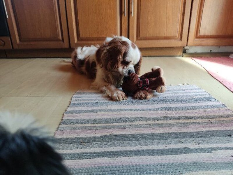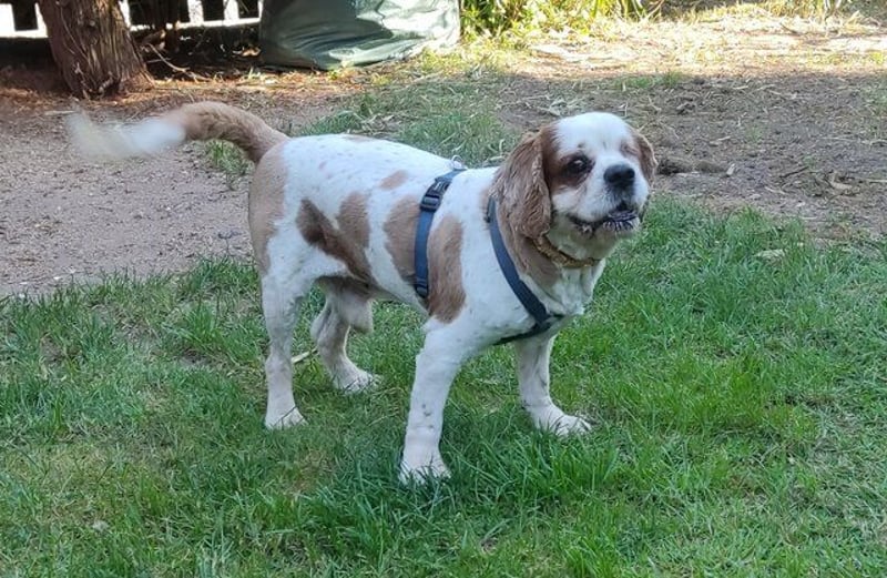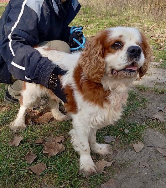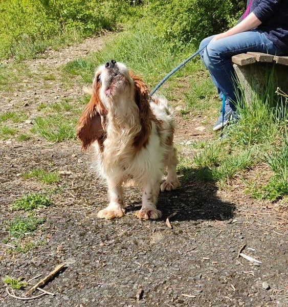 Pflegestelle: 95336 Mainleus / Rothwind Rasse: Cavalier King Charles Spaniel Farbe: Blenheim Geboren: 24.12.2016 – ein älterer Hund, aber mit so viel Lebensfreude