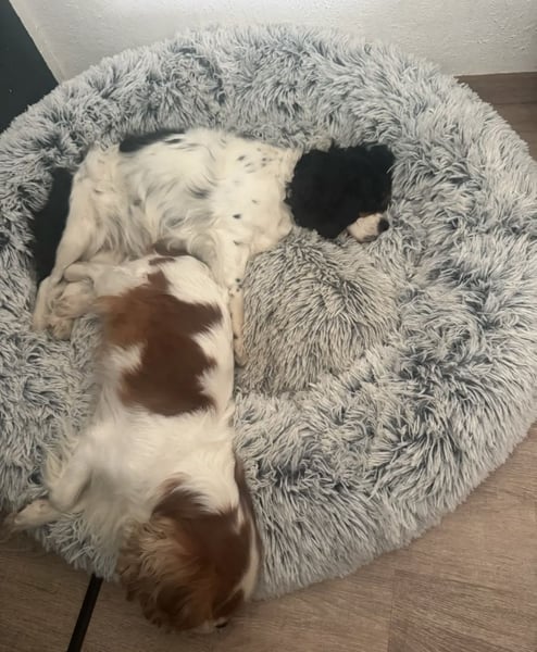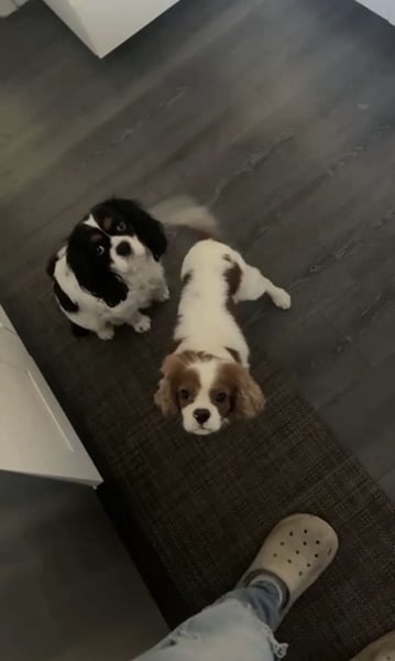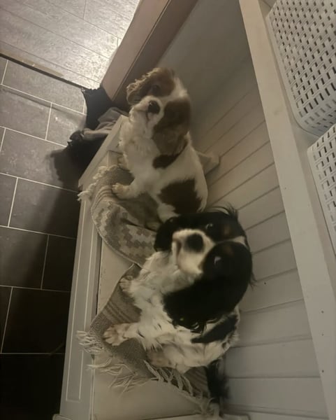 Diese beiden reinrassigen 4 jährigen King Charles Damen suchen zusammen oder getrennt ein neues Zuhause.