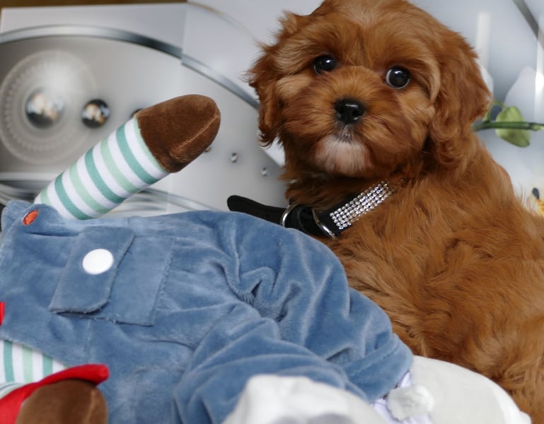 Sie sind Welpen aus Cavalier King Charles Spaniel und Toypudel. Die kleinen Welpen sind ausgeglichen ruhig und verschmust.