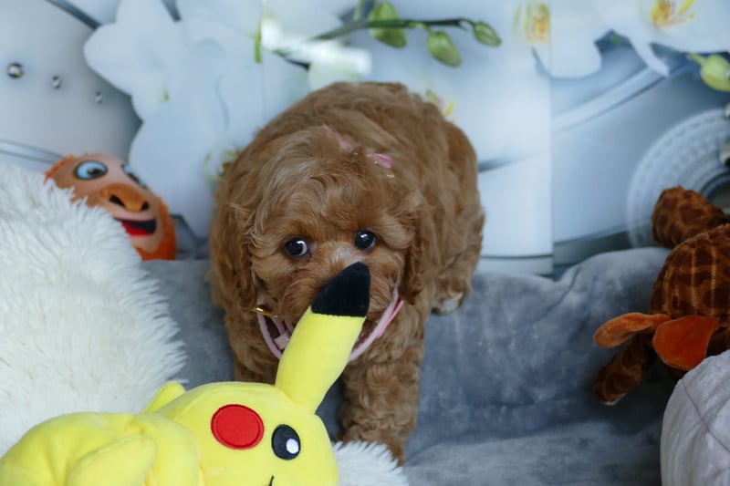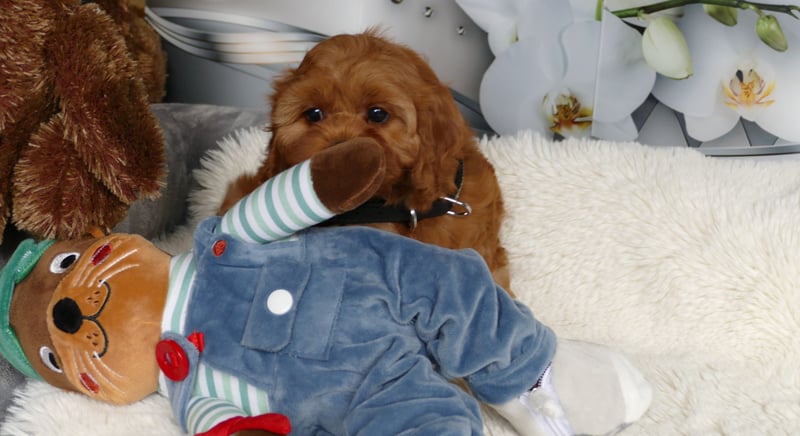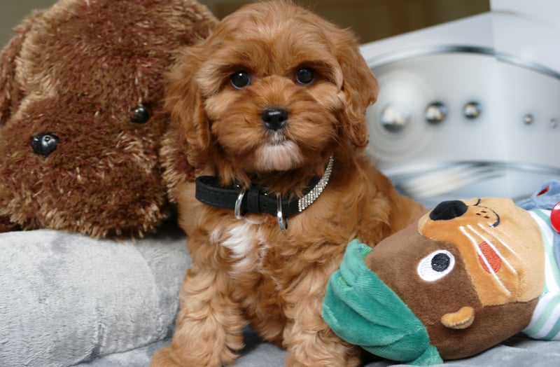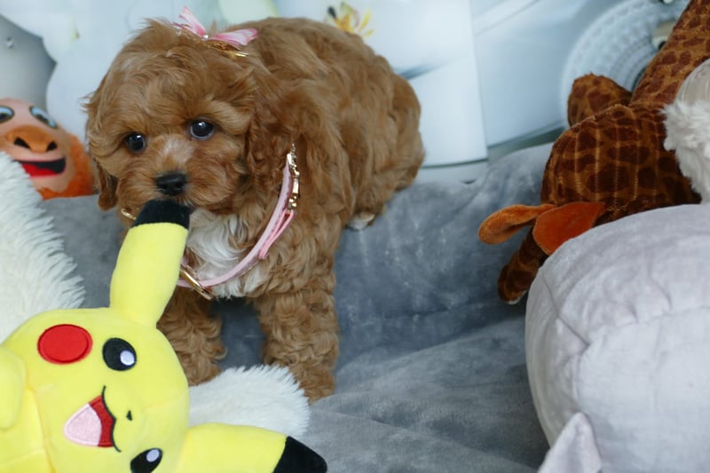 Sie sind Welpen aus Cavalier King Charles Spaniel und Toypudel. Die kleinen Welpen sind ausgeglichen ruhig und verschmust.