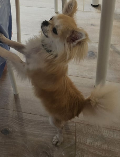 Er mag Kinder und kennt schon viele Kommandos. Er ist gewohnt allein Zuhause zu sein. Er spielt gerne mit anderen Hunden.