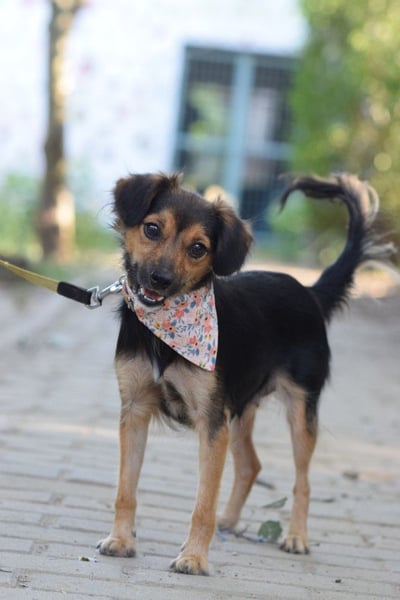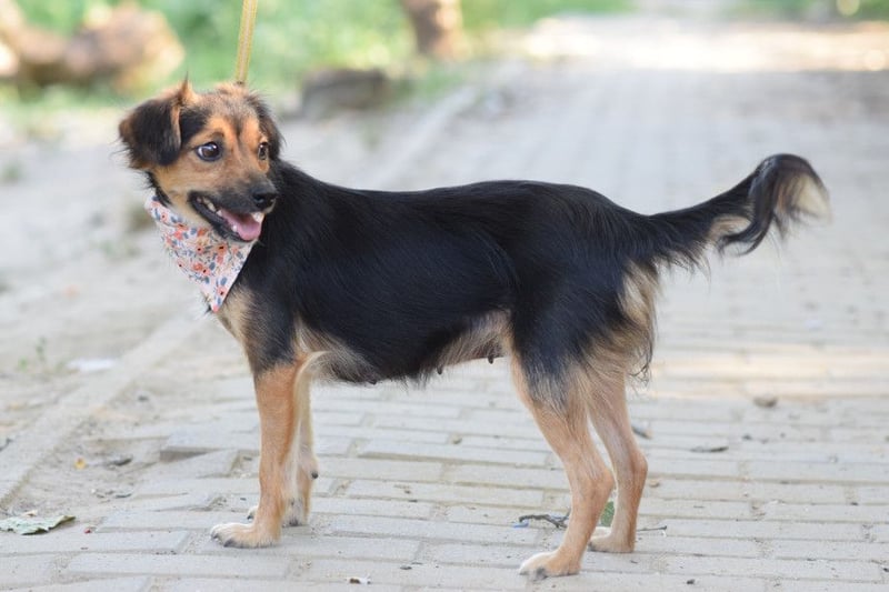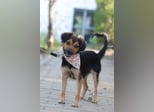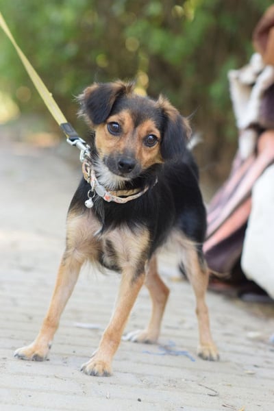 Missy ist eine zierliche Hündin, vermutlich ein Chihuahua/Pinscher Mischling, und sie ist stubenrein. Mit anderen Hunden zeigt sie einen „Napoleon-Komplex“, das heißt, sie tritt gegenüber Artgenossen dominant und frech auf. Wie sie auf Katzen reagiert, ist uns leider nicht bekannt, aber zu Kindern ist sie freundlich.