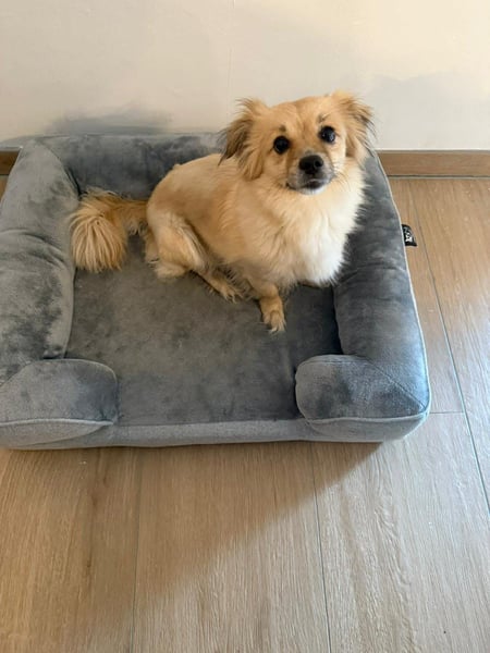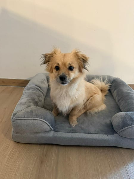 Kira ist ein kleiner Sonnenschein. Bei fremden Menschen bekommt sie zunächst große Augen – verständlich, denn sie durfte lange Zeit nicht richtig am Leben teilnehmen. Vieles ist neu für sie. Doch wir finden, dass sie das ganz wunderbar meistert. Als wir sie abgeholt haben, zitterte sie vor Angst. Schon nach wenigen Minuten liebevoller Kontaktaufnahme fasste sie Vertrauen, zeigte ihren Bauch und wollte gekrault werden. Auf ihrer Pflegestelle entwickelt sie sich großartig. Sie ist unglaublich menschenbezogen, liebevoll und voller Vertrauen – mehr, als wir es nach ihrer Vorgeschichte erwartet hätten. Immer wieder zeigt sie ihren Bauch, sucht Nähe und genießt jede Streicheleinheit. Am liebsten sitzt sie auf dem Schoß ihrer Menschen. Wenn sie dabei noch umarmt wird, scheint sie die glücklichste Hündin der Welt zu sein. Draußen läuft Kira gut an der Leine. Begegnet sie Menschen oder anderen Hunden, bleibt sie kurz stehen und schaut – vermutlich, weil vieles für sie noch neu ist. Ihre früheren Spaziergänge waren wahrscheinlich viel zu kurz und beschränkten sich auf die Wiese hinter dem Haus. Kira ist stubenrein und macht sich insgesamt ganz, ganz toll.