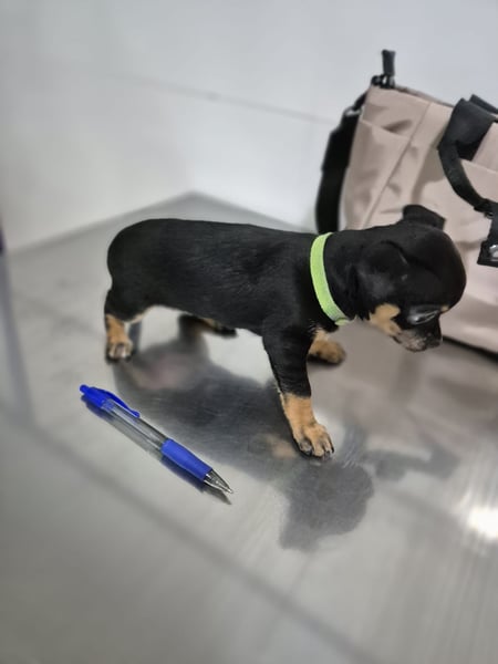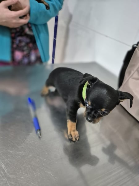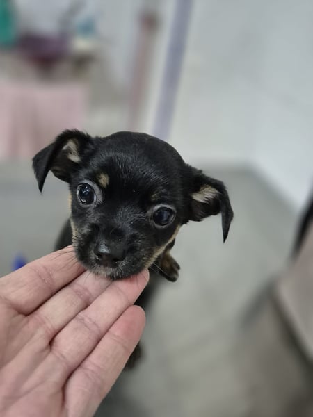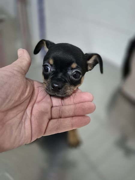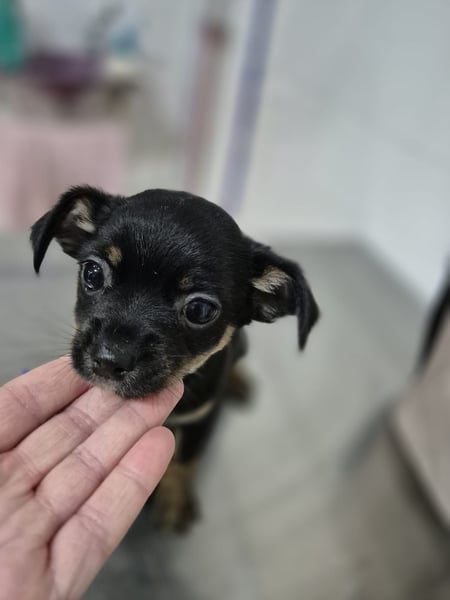 Kleine Hündin , die Mitte Januar 2026 geboren wurde. Sie ist gechipt und geimpft, wiegt aktuell etwa 1,0 Kilogramm und ist natürlich noch im Wachstum. Ein Mittelmeercheck ist altersbedingt noch nicht möglich. Zurzeit befindet sie sich in Spanien, ihre Ausreise mit dem Transport ist für den 11.04. geplant.