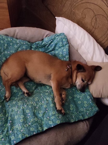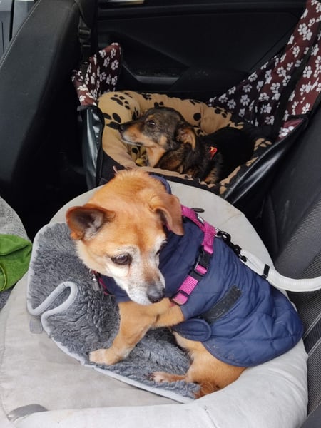 In Portugal wurde sofort die Vermittlung für die liebenswerten Hündinnen gestartet. Schon nach kurzer Zeit hatte Elmi eine Pflegestelle in Deutschland in Aussicht. Beim Tierarzt-Check stellte sich jedoch heraus, dass sie kleine Brusttumore in beiden Milchleisten hatte. Die tapfere kleine Elmi hat die beiden Operationen locker weggesteckt, die Befunde der Tumore waren gutartig und Elmi bereit für ein Zuhause. Zwischenzeitlich wurden ihre Töchter vermittelt und dann kam auch die Chance für Elmi.