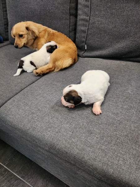 ▪️Diese Rumänien hat dann aus lauter Boshaftigkeit diese beiden kleinen Hündinnen, von zwei in unserer größeren Hunde dort die wir gerettet haben und die noch nicht kastriert waren decken lassen. Und das natürlich verschwiegen.