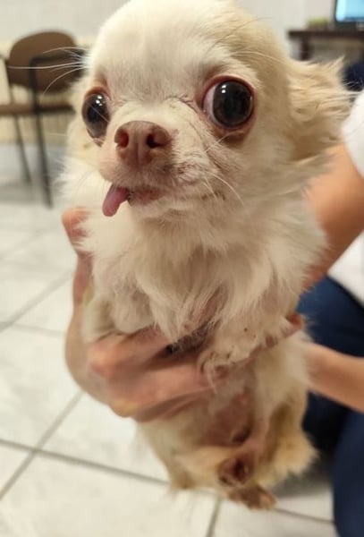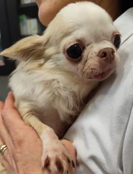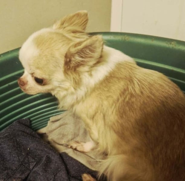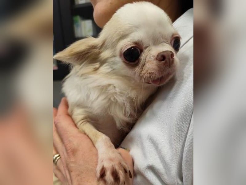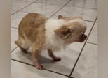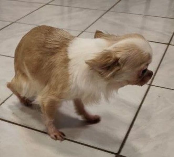 Tiffy wurde von einem Vermehrer im Tierheim abgegeben. Grund für die Abgabe sind einzelne Beeinträchtigungen, mit denen Tiffy leben muss. So hat sie nur noch vier Zähne und beide Hinterbeine weisen eine schwere Patellaluxation auf (Probleme mit der Kniescheibe). Aus diesem Grunde belastet Tiffy ein Hinterbein nur sehr wenig. Eine Operation ist sehr risikoreich. Sie bekommt jetzt jede Woche eine Osteospritze, Schmerztabletten und Alavis-Chondro.