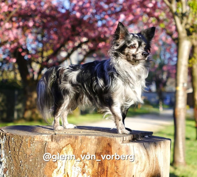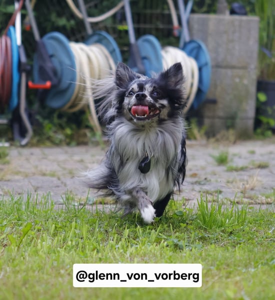 Er ist ein sehr sportlicher aktiver Chihuahua der gerne Agility macht und unglaublich gut springen kann. Er ist sehr intelligent und lieb. Ein richtiger Schmusehund und immer sehr freundlich zum Besuch.
