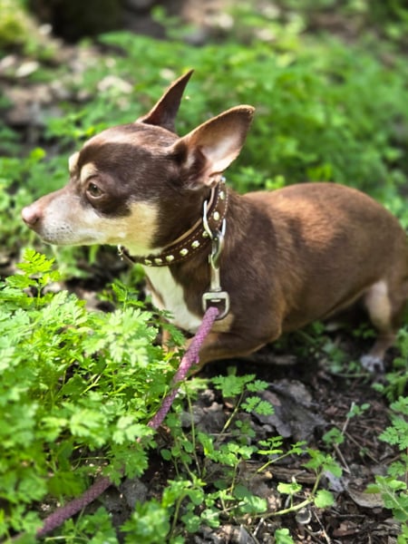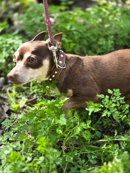 An der Leine läuft er brav und erkundet neugierig seine Umgebung.