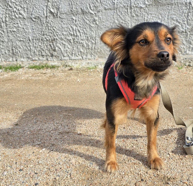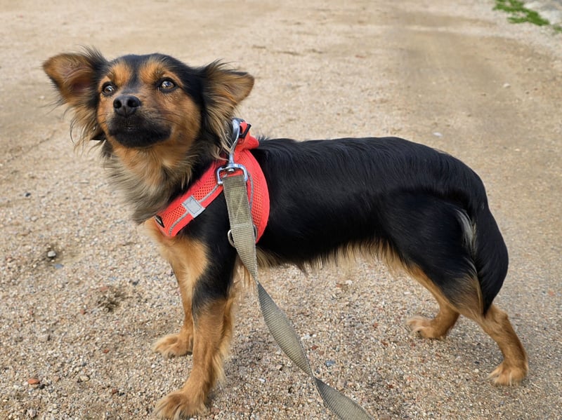 Die kleine Hündin ist sehr sehr menschenbezogen, geht gut an der Leine, zeigt sich aufgeschlossen und neugierig.