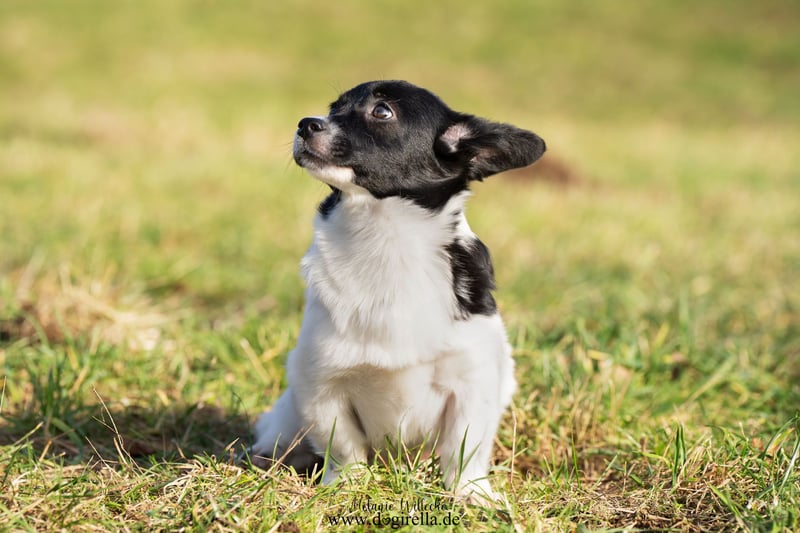 Schaut man in dieses Gesicht sieht man das kleine Chihuahua Mädchen, fast puppenhaft und zart. Maschiert sie dann aber los erkennt man den kleinen, kräftigen Hund mit dichtem flauschigen Fell, kurzen, kräftigen Beinen und dicken Füßchen. Und auch das Gangbild erinnert an Welsh Corgis.