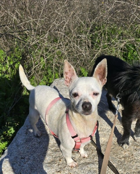 Mimma kommt ursprünglich aus Sardinien, wo sie von ihrer Besitzerin im Tierheim abgegeben wurde. Sie hatte Glück und konnte im Februar auf eine Pflegestelle nach 37327 Lünefelde ziehen. Hier lebt sie mit einem kleinen Rüden zusammen.