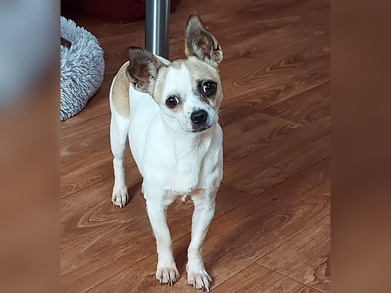 Ich bin ein kleines, hübsches Chihuahua Mädchen, in der schönen Farbe Weiß / Braun. Mein bisheriges Leben war nicht so schön, da ich Welpen für den Billigmarkt bekommen musste. Aber jetzt darf ich endlich auch anfangen zu leben und bin auf der Suche nach meinen Menschen, die mir die Welt zeigen. Ich lebe hier auf meiner Pflegestelle mit einem anderen Hund zusammen. Ich klein, aber oho ! Ich bin mutig wie ein Großer und neige oft dazu, meine Familie oder Bezugsperson zu beschützen. Außerdem lerne ich schnell und begeistert Tricks und Kunststücke. Ich eigne mich sogar für viele Sparten des Hundesports.