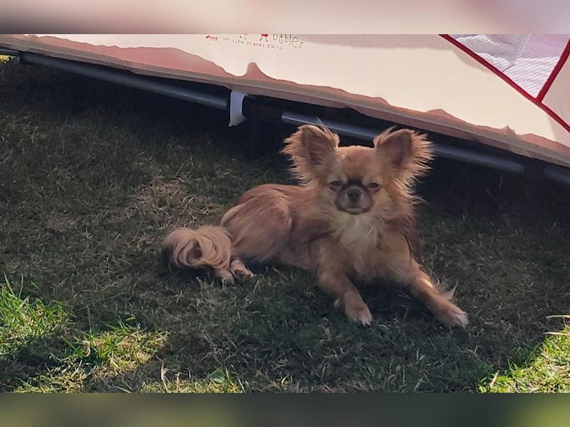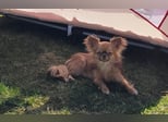Er ist im April 2025 geboren. Charakterlich ist er sehr verschmust. Er läuft super an der Leine und rennt auch gern im Garten
