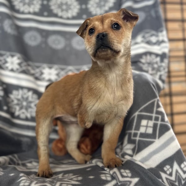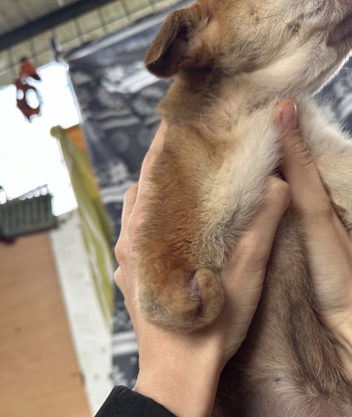 Elena ist ein kleines Mädchen, laut Tierarztschätzung ca. 3 Monate alt (geb. 15.09.2025), wiegt aktuell etwa 3 kg und ist ca. 25 cm groß. Sie ist sicherlich ein kleinerer Chow-Chow-Mischling.