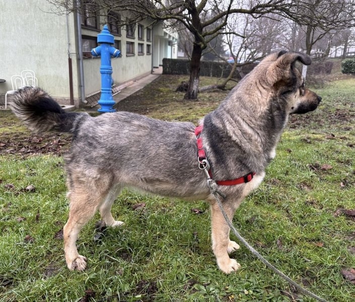 Tika ist ein Mädchen, sie ist laut Tierarztschätzung ca. 1 Jahr alt (geb. 20.08.2024), wiegt 21,6 kg und ist 55 cm groß. Sie ist eine mittelgroße Hündin und damit ideal für ein harmonisches Familienleben. Vermutet wird ein Chow-Chow-Schäferhund-Labrador Mischling.