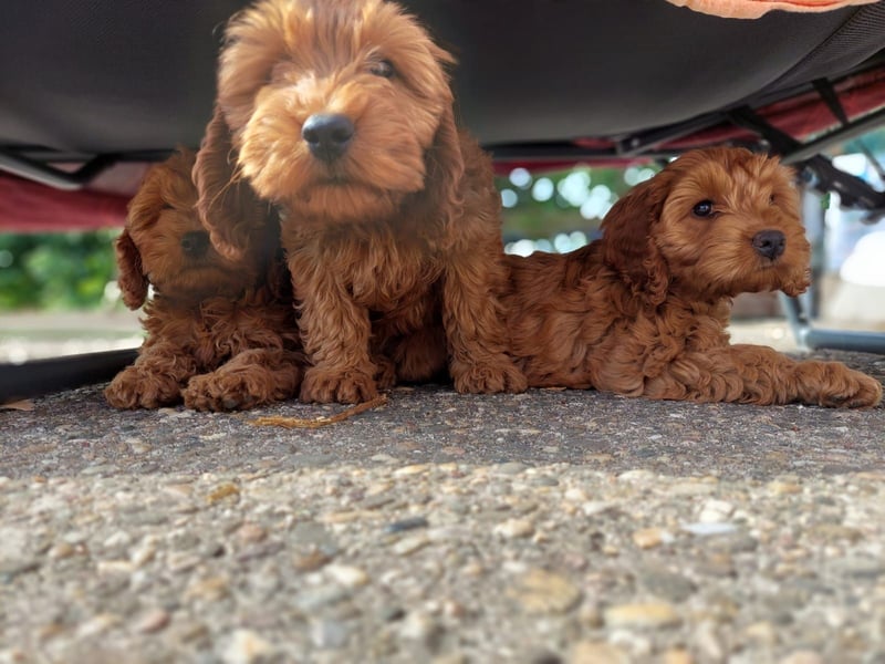 Die Welpen werden eine Größe von ca 30-35cm erreichen, es handelt sich um die originalen American Cockapoo aus American Cocker Spaniel x Zwergpudel.Unsere kleinen Schätze wachsen bei uns im Haus mit Garten, Kindern und anderen Hunden unseren Katzen und Pferden auf und sind bis zur Abgabe mit frühestens 9 Wochen bestens sozialisiert und kennen sämtliche Alltagsgeräusche. Der Cockapoo ist ein super lieber und treuer Wegbegleiter der auch für Allergiker und Asthmatiker geeignet ist, da er kaum bis garnicht haart. Desweiteren werden Cockapoos auch erfolgreich als Therapie und Begleittherapie Hunde eingesetzt.