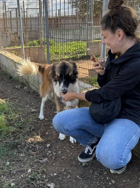 Candy ist eine freundliche und aufgeschlossene Hündin, vermutlich ein Collie-Mischling. Sie zeigt sich neugierig und aufmerksam gegenüber ihrer Umgebung und begegnet sowohl Menschen als auch Artgenossen offen und freundlich. Dabei wirkt sie interessiert, ohne aufdringlich zu sein, und bringt eine angenehme Ausgeglichenheit mit.