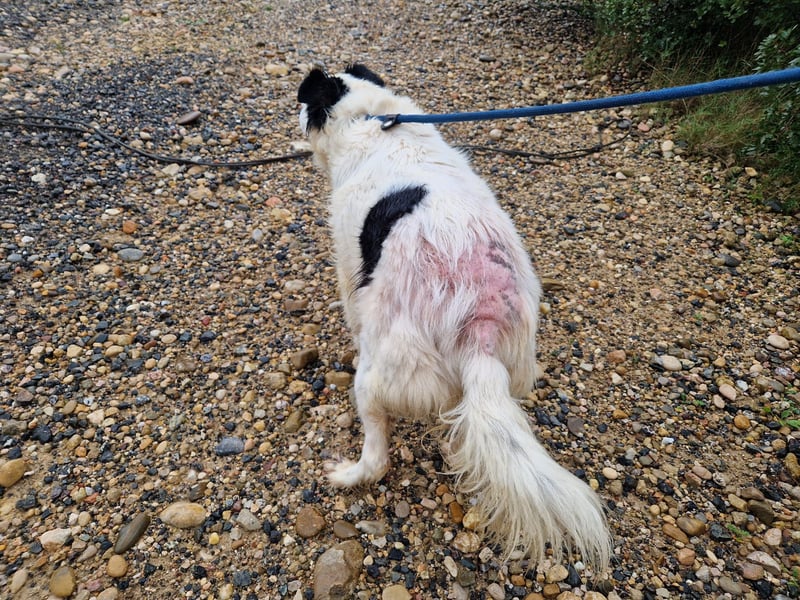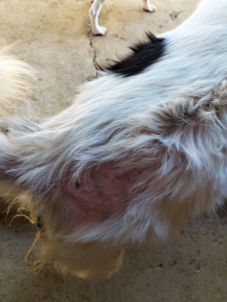 Vor allem Marielena leidet stark unter Stress bedingtem Haarausfall und hat vor allem am Ansatz der Rute eine große kahle Stelle.