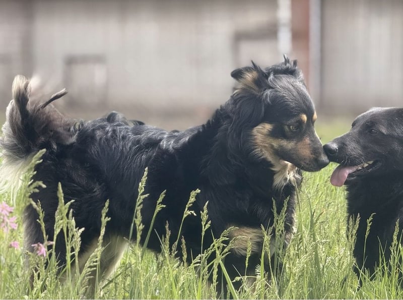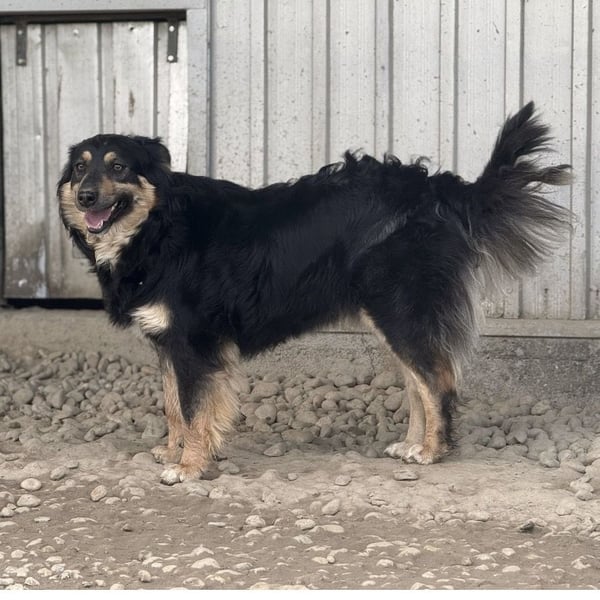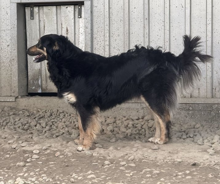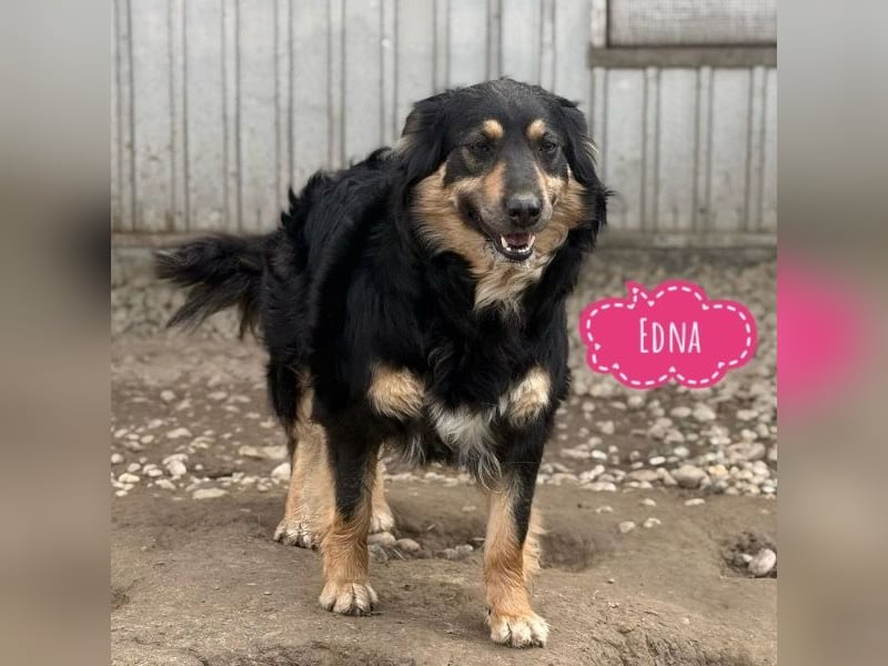 Edna ist ein Mädchen, laut Tierarztschätzung ca. 2 Jahre alt (geb. 11.05.2024), wiegt 22,8kg und ist 53cm groß. Vermutet wird ein Berner Sennenhund - Collie Mischling.