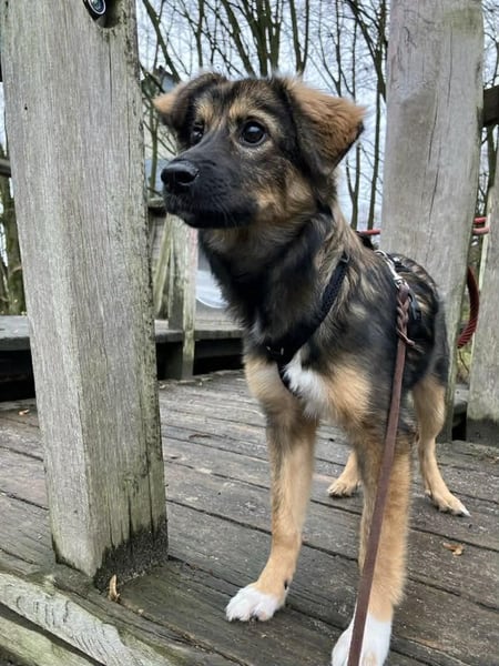 Auf ihrer Pflegestelle zeigt sich Daisy durchweg nett zu Mensch und Tier. Sie ist welpentypisch verspielt und nun wirklich bereit, die Welt da draußen zu erkunden. Natürlich muss sie noch viel lernen. Sie macht gerade die ersten Versuche an der Leine, ist noch nicht zuverlässig stubenrein und auch alleine bleiben muss sie lernen, denn sie war einfach bis heute noch nie wirklich allein. Immer waren doch Hundekumpel an ihrer Seite.