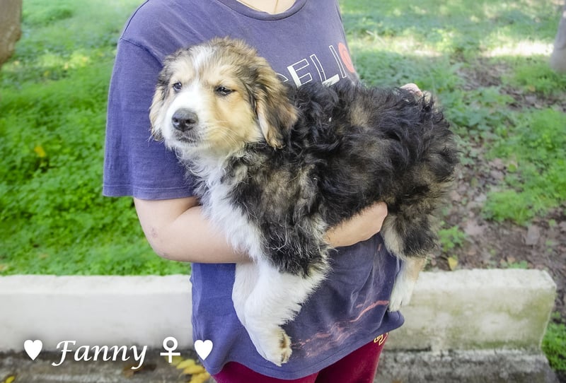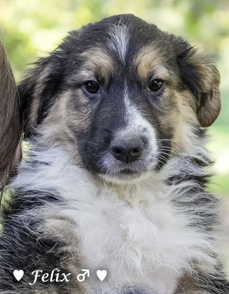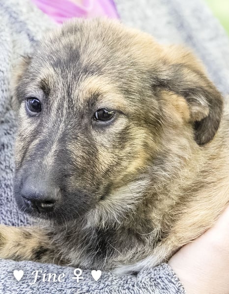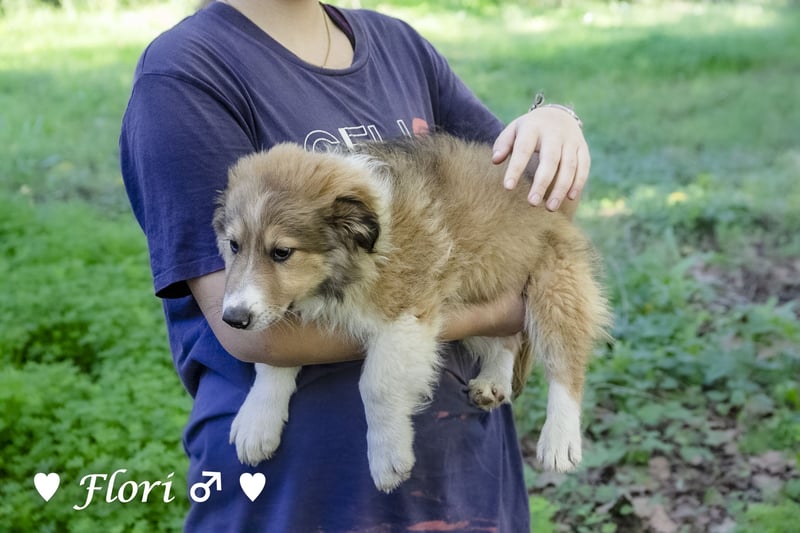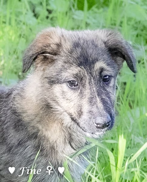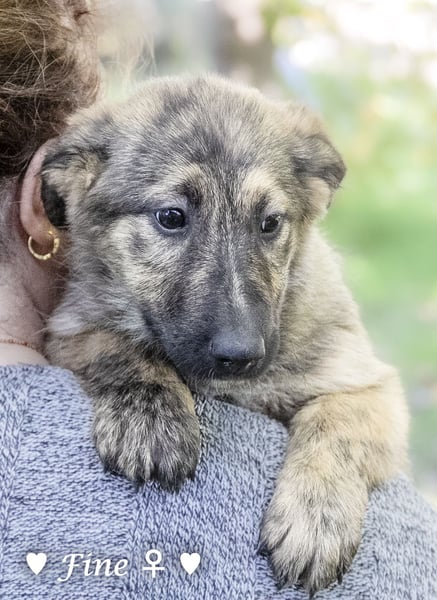 Eine schwangere Hündin wurde ausgesetzt, von einer Tierfreundin aufgenommen und adoptiert. Wir haben die Welpen übernommen. Sie sind im Haus aufgewachsen, an Katzen, Hühner usw. gewöhnt. Sie lieben die Enkelkinder der Pflegemama.